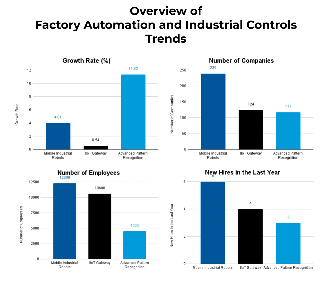 Mobile Industrial Robots is a key trend in factory automation and the industrial controls market. They support flexible material handling, warehouse automation, and intralogistics operations in manufacturing facilities. More than 230 companies are actively involved in the sector, employing 12 300 workers. Further, it has an annual growth rate of 4.01%.