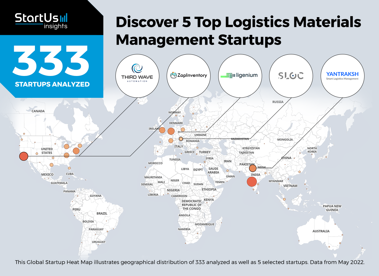 Out of 333, the Global Startup Heat Map highlights 5 Top Logistics Materials Management Startups