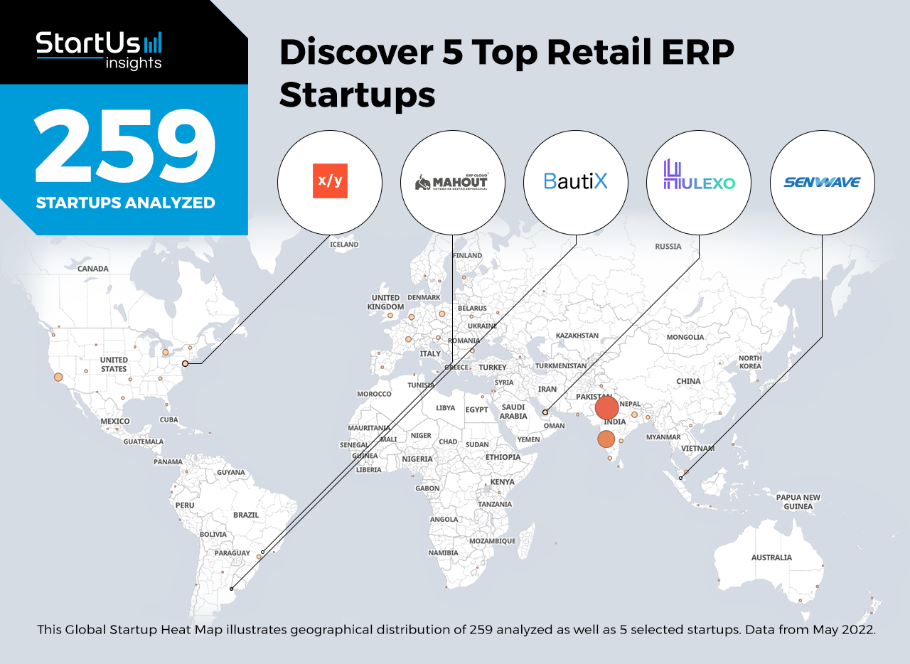Out of 259, the Global Startup Heat Map highlights 5 Top Retail ERP Startups