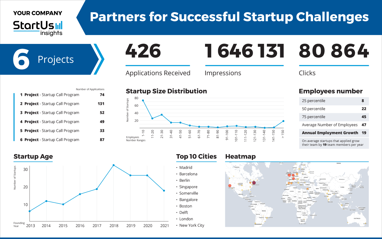 When looking for startups to work with, data-driven tools allow you to quickly narrow down your search. They allow you to select startups that match a range of criteria such as maturity, location, and age, among others.