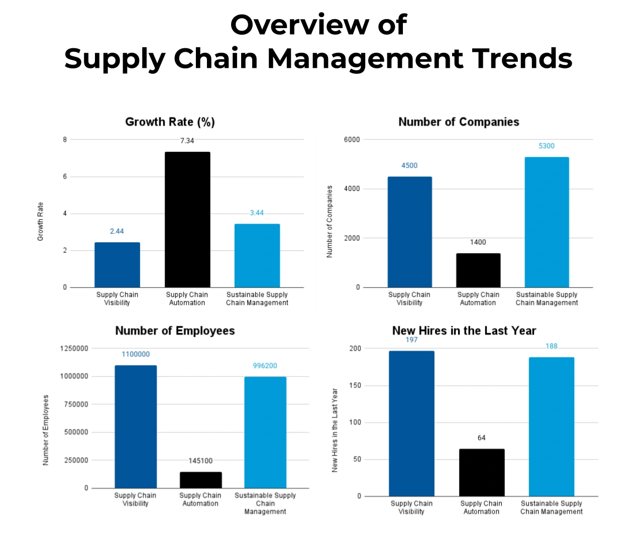 • Manpower: The supply chain management market employs more than 3.9 million workers worldwide. It added 690+ employees in the last year.